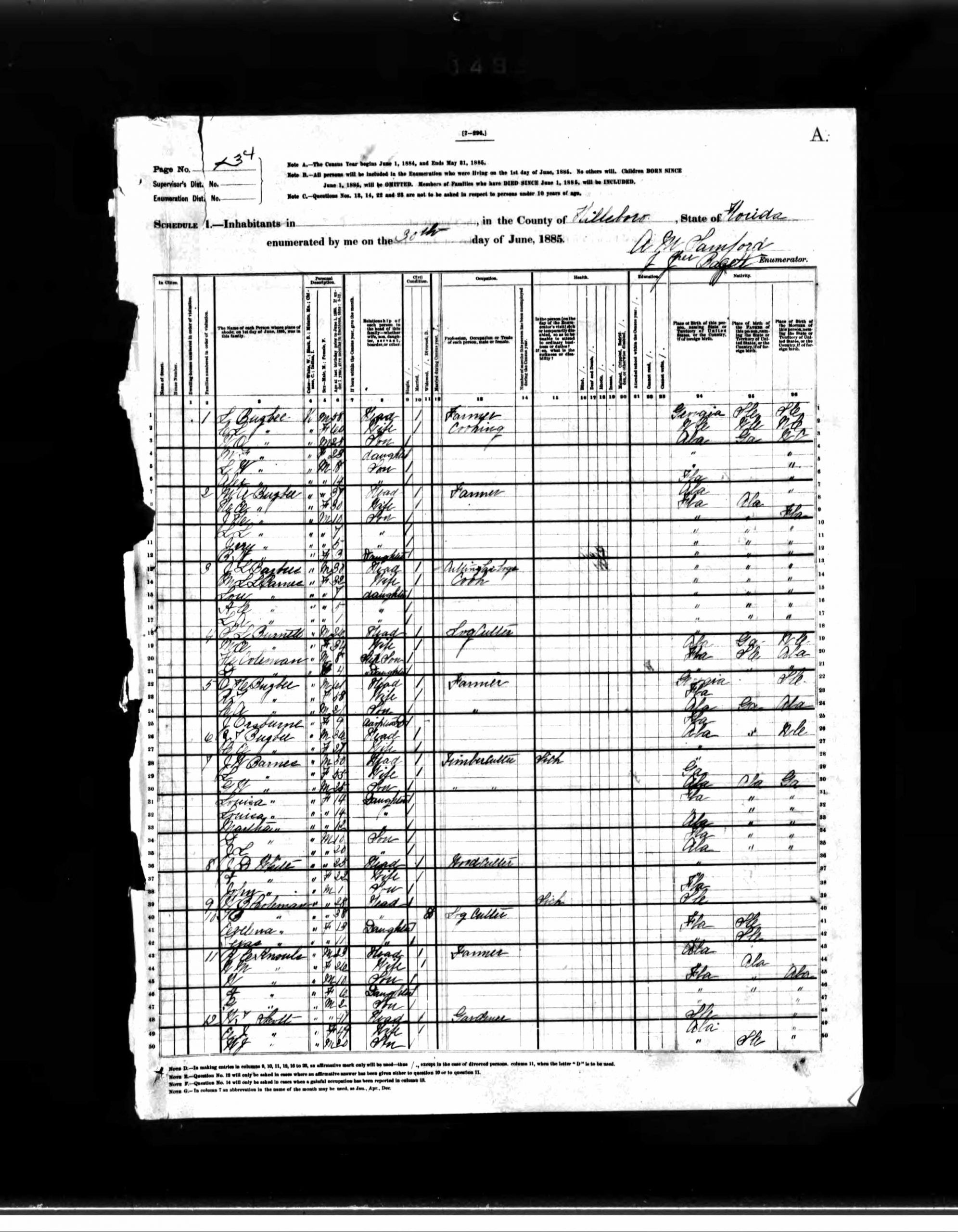 Bessie Olar Buzbee was the daughter of Marion Augustus Buzbee and Hannah Boyett. She was born 05 Feb 1883 in Hillsborough County, Florida. Marion and Hannah can be found in 1880 and 1885 Hillsborough County, Florida. Bessie is in the household in 1885.