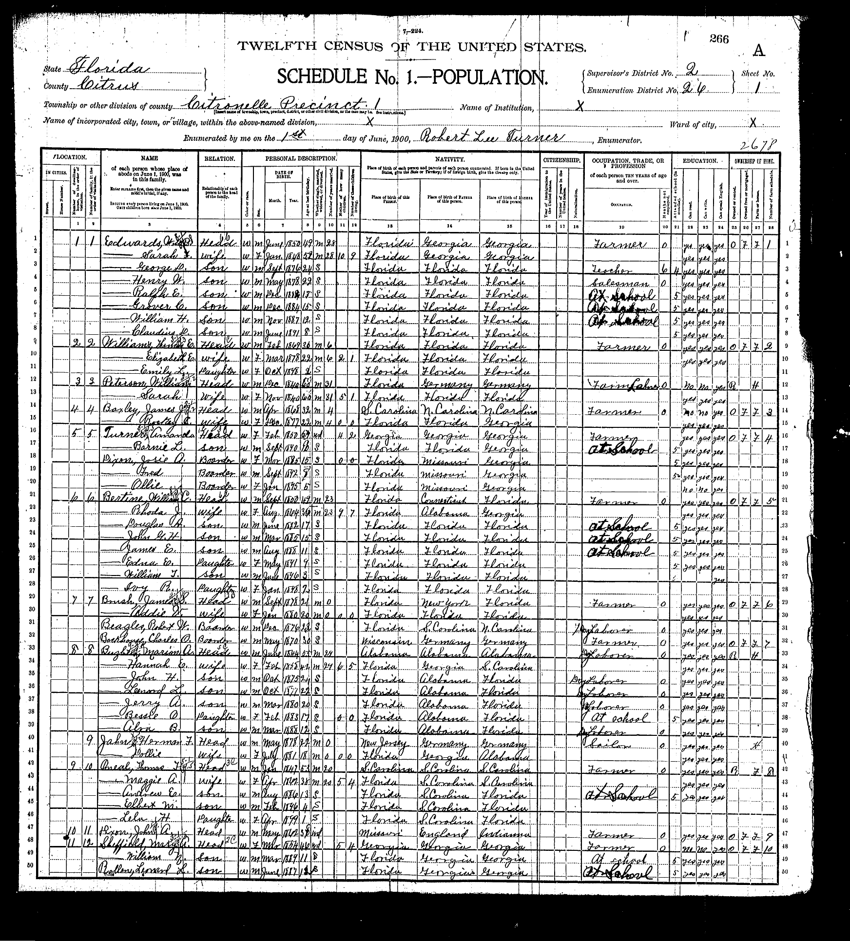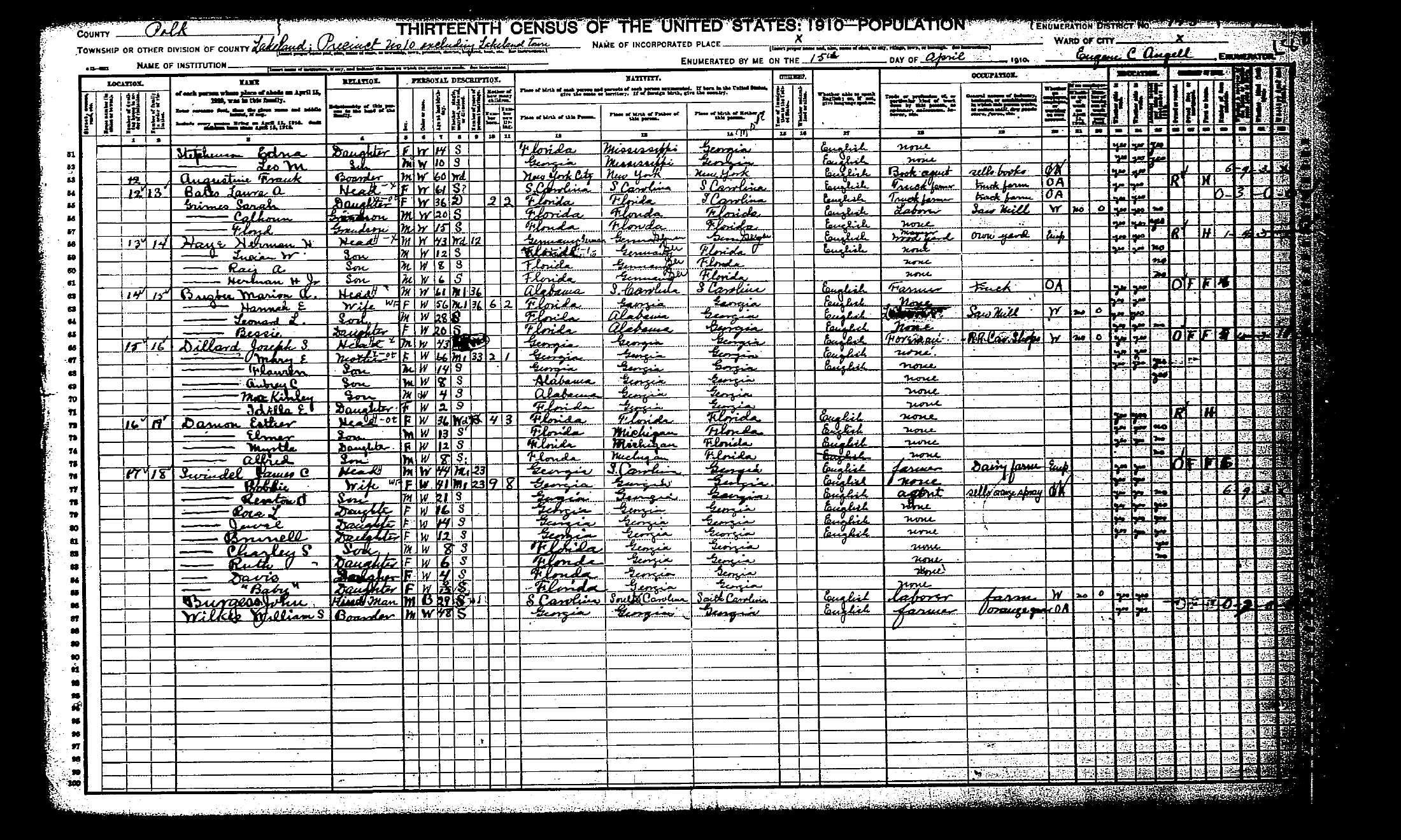 Bessie Olar Buzbee married John Calhoun Grimes in Polk County, Florida sometime between 1910 and 1913. I say this because she is in Marion and Hannah Buzbee’s household in 1910 and her son Alva is born cir. 1913.