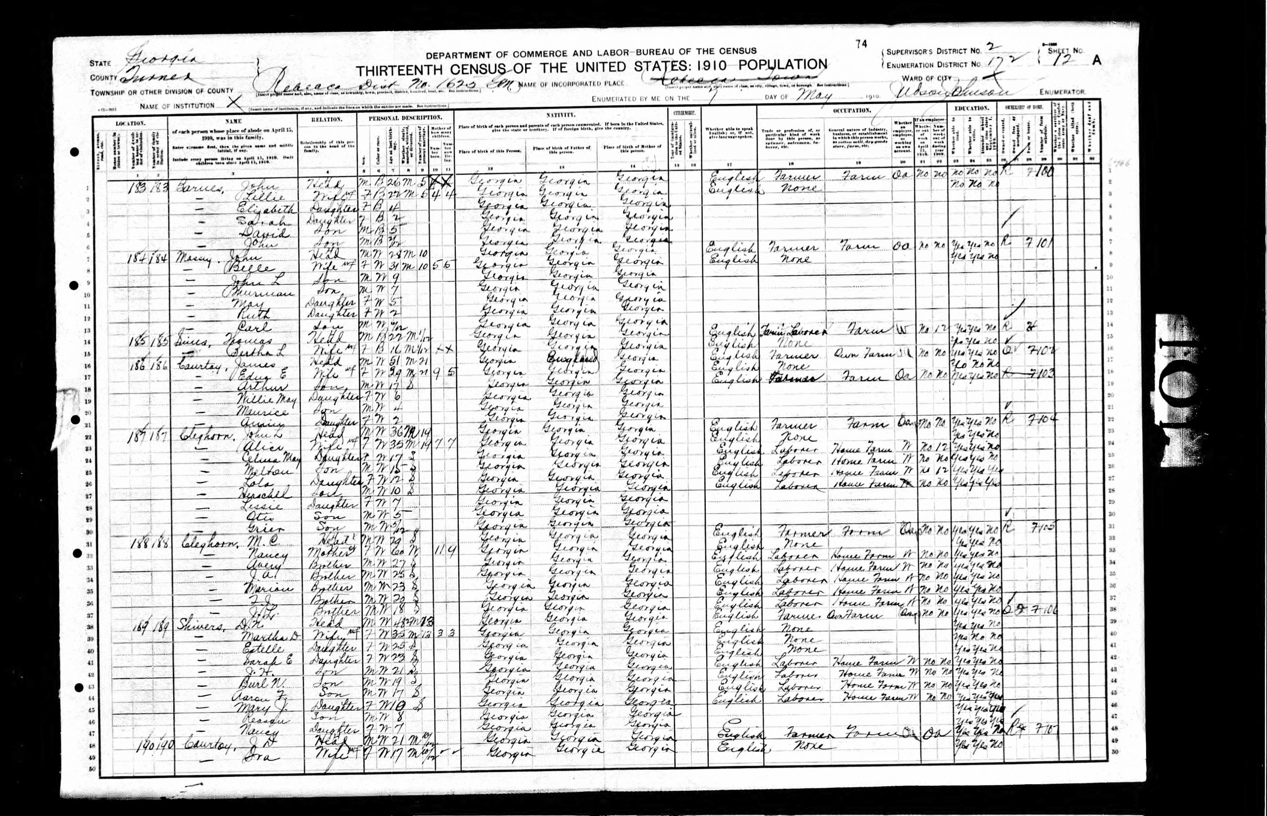 James Monroe Courtoy married Edna Elizabeth Massey in Georgia. They had numerous children. It appears as though they lost a number of children. In 1900, census states that Edna had 6 children but only three were living; David, Arthur and a son, Perry. In 1910, she has had 9 children and only 5 living. Perry is not listed in 1910.