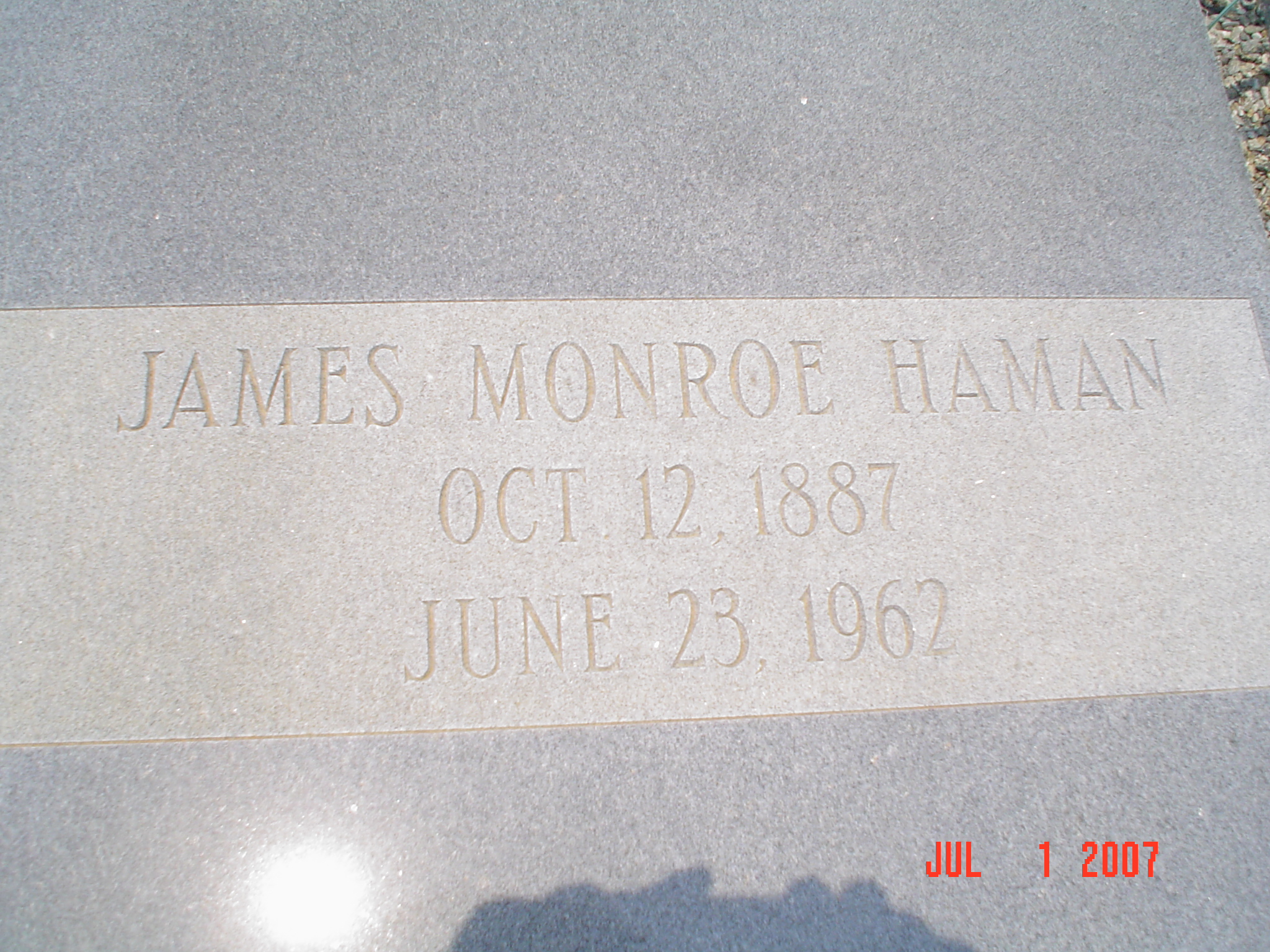 James Monroe Haman was born to Alvah B. Pinkney Haman and Mary Matilda Rooks on the 12th of October 1887 in Georgia.