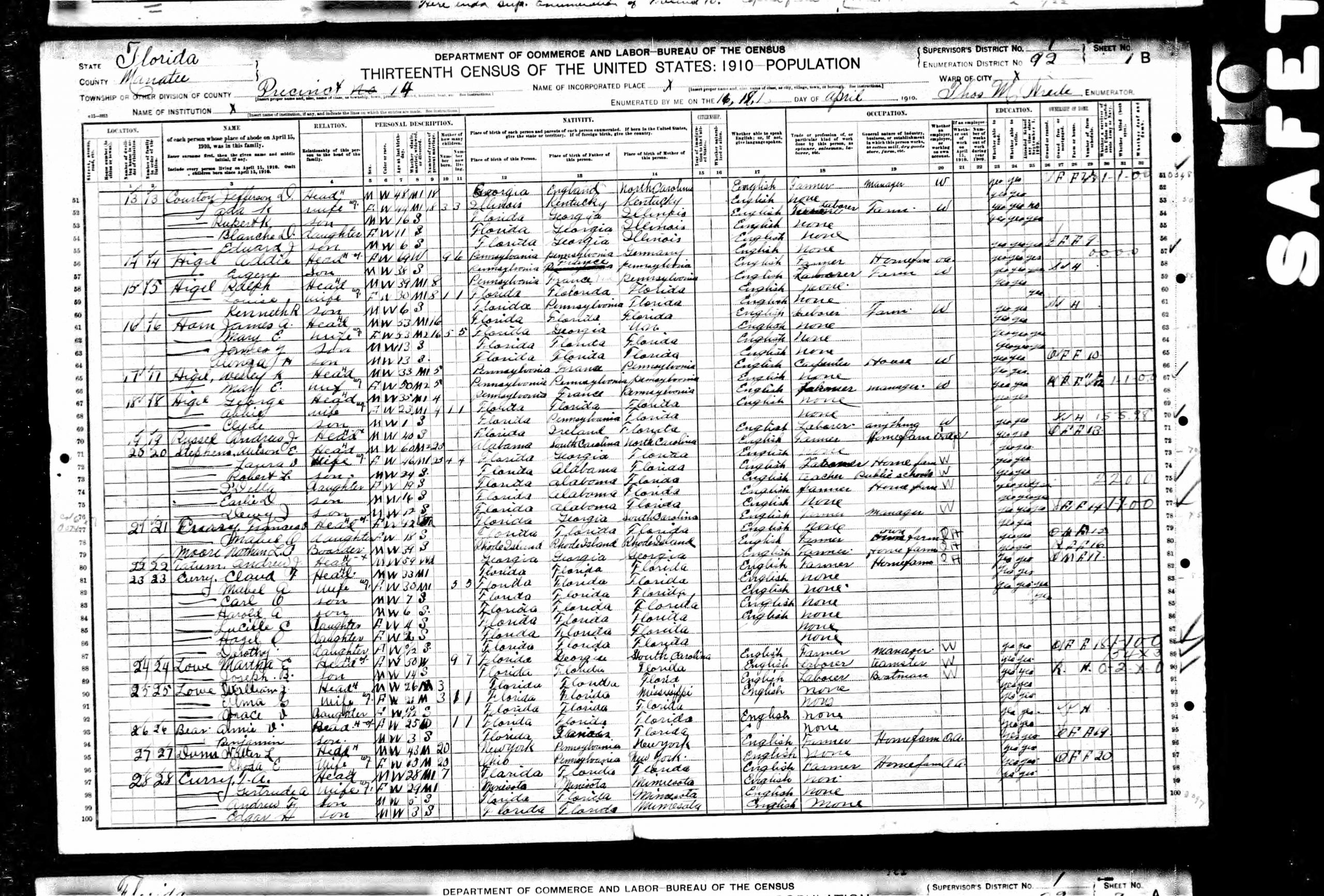 Jefferson Davis “David” Courtoy married Ada Kelly, probably in Florida.