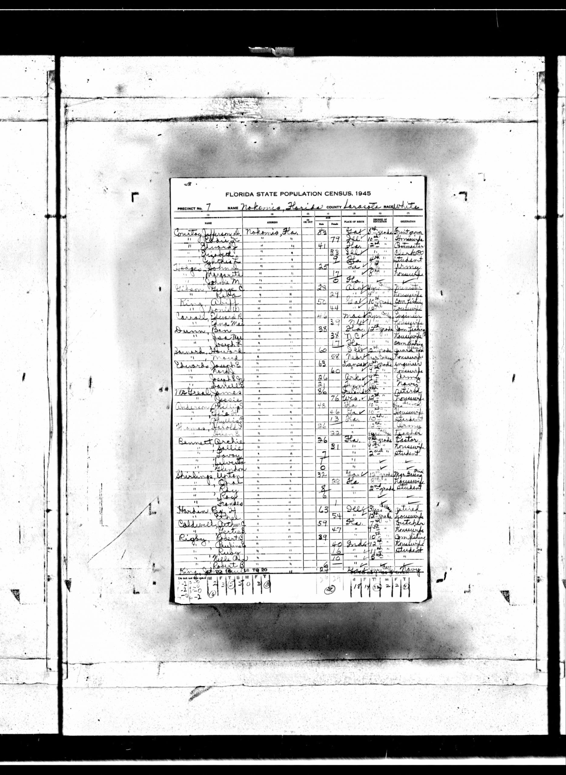 J. D. Courtoy died in Sarasota hospital nearly Sunday Morning. Mr. Courtoy, who lived with his daughter, Mrs. Neil R. Cooking, 780 24th Avenue North was visiting his former home in Nokomis. Surviving, besides his daughter, are his wife, Ada Courtoy, St. Petersburg; and two sons, Edward Courtoy, Nokomis and Ruppert Courtoy, Sedan, Kansas, and five grandchildren. Services will be held Tuesday at 2 p.m. in the Nokomis Methodist Church. Interment will follow in the Nokomis Cemetery.