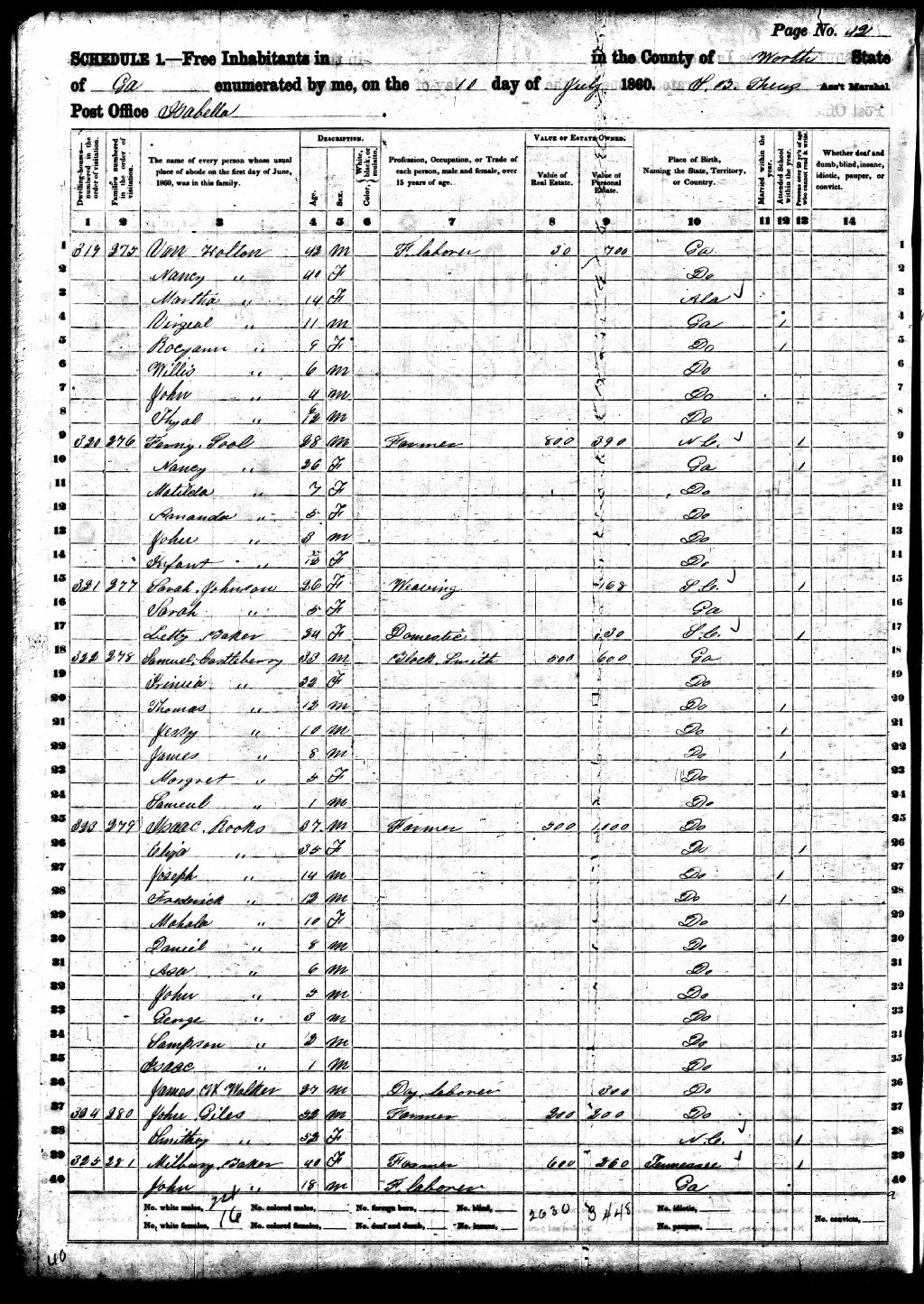 John Jackson Rooks died on the 4th of November 1938 in Worth County, Georgia and is buried in the Sumner Cemetery, Sumner, Worth County, Georgia. His wife, Martha Smith Rooks, died on the 18th of July 1939 (according to her tombstone)in Worth County, Georgia and is buried next to her husband. I am confused by the death date of Martha Smith Rooks. Ancestry shows a Martha Rooks died in Worth County, Georgia on the 19th of July 1929. I find John Jackson Rooks living as a widow in 1930 Florida with his daughter, Susan Jane Rooks Lamb. Where is Martha? Is she deceased or are they just living apart? I know what the tombstone says but I cannot find any record supporting that date.