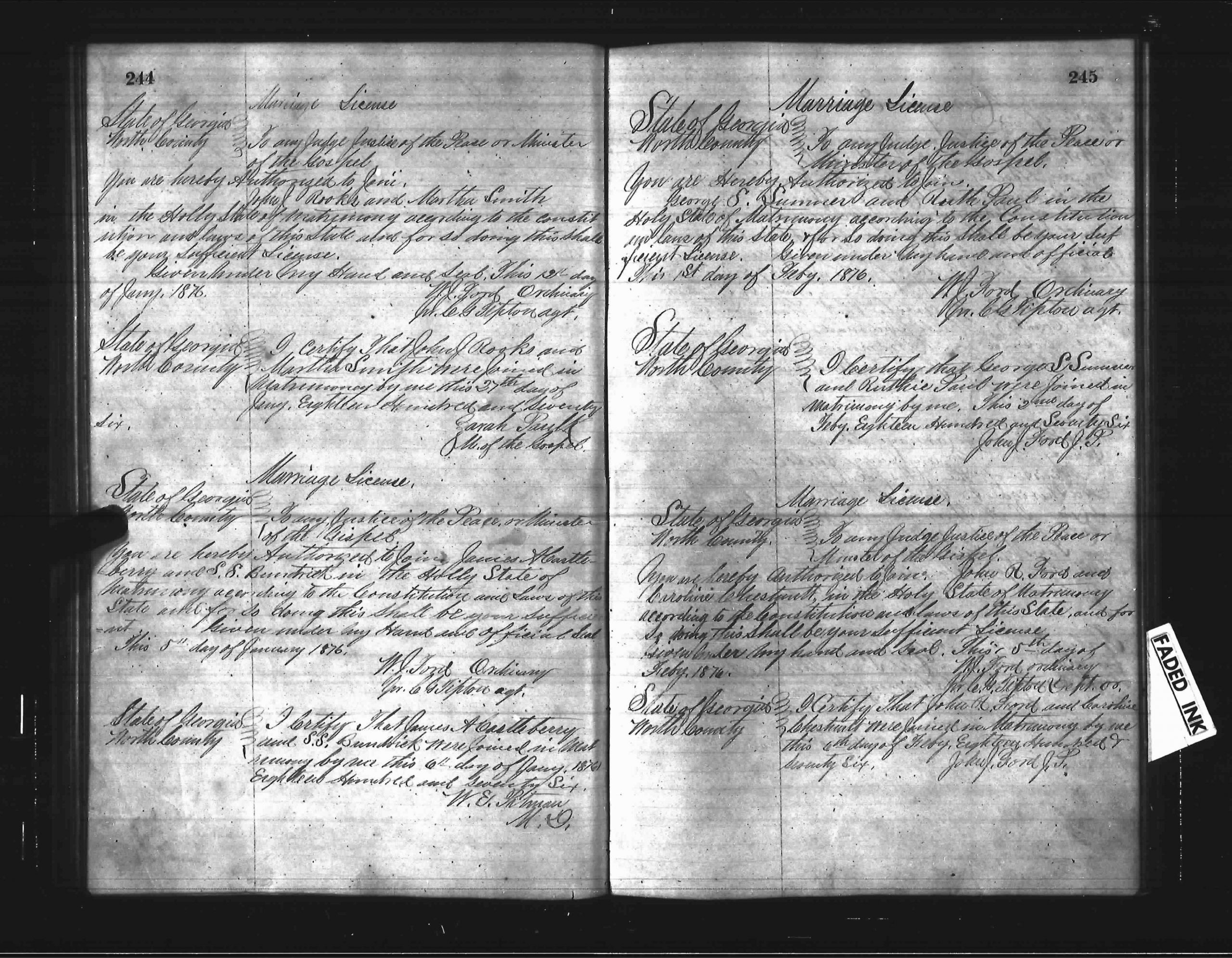 John Jackson Rooks married Martha Ann Smith on the 27th of January 1876 in Worth County, Florida. Martha Ann Smith was born on the 10th of May 1861 in Wilcox County, Georgia to Jasper Smith and Flora Ann “Annie” Haman.