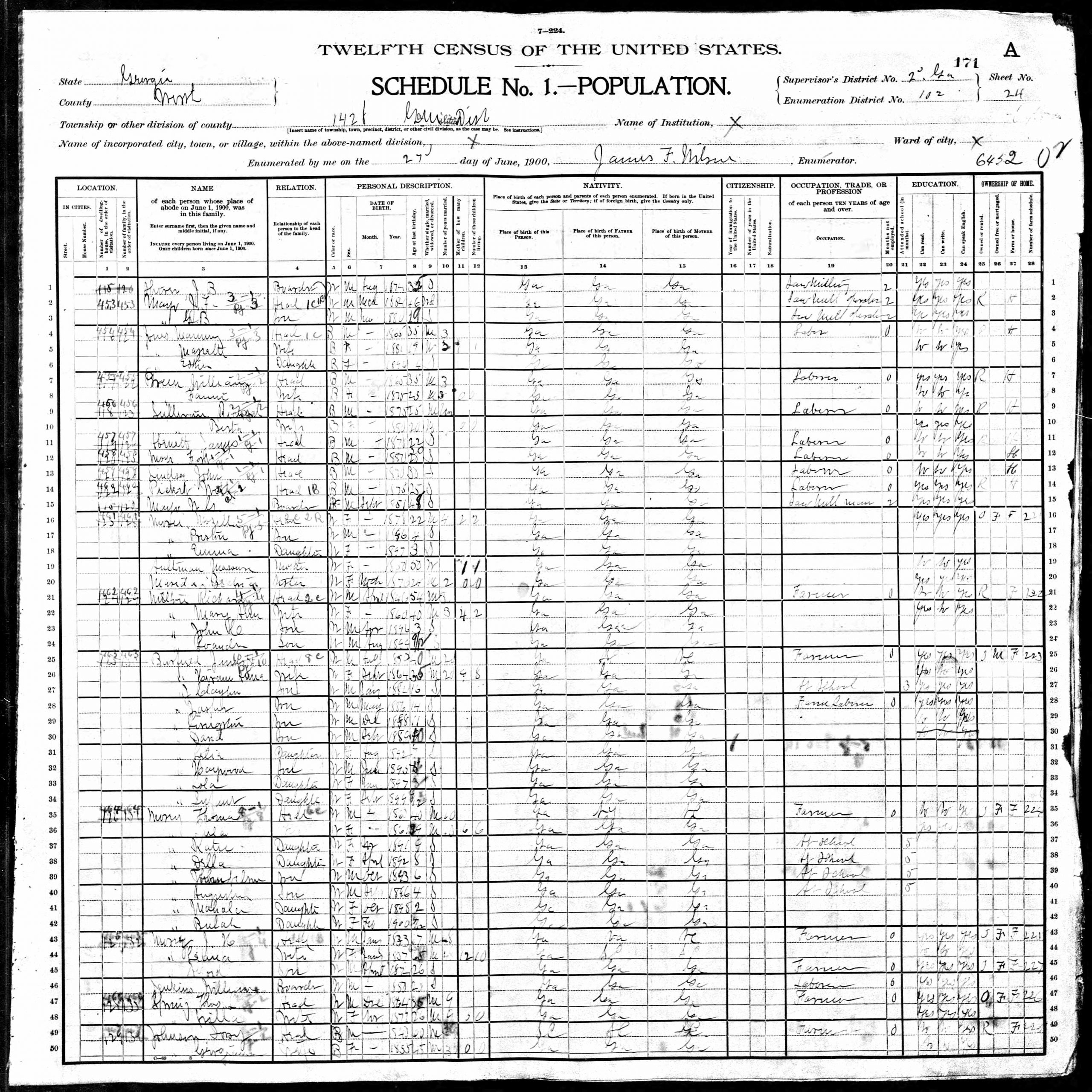 Mary Ann Julia Courtoy married Richard Melton, they had 5 children with only one surviving; John Carl Melton. They have two sons living with them in 1900; John, who is 3 and Lowden? who is 9 months old.