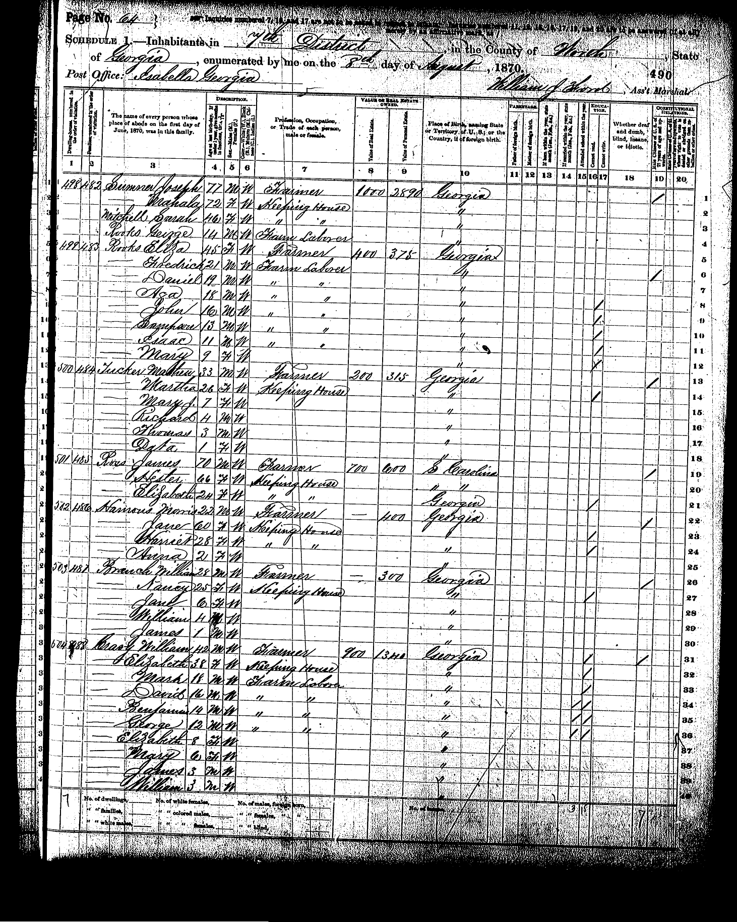 Alvah and Mary had 14 children, Joseph Franklin, Susie Jane, George W., Perry, James Monroe, Carrie Priscilla, Eliza Elizabeth, Mary Frances, David Richard, Retha Mahala, Ethel Sara, Vera Thelma, Warren and Walker. Warren-Born-11 Feb 1881 Died 13 Mar 1882-Buried Hopewell Cemetery, Turner County, Georgia and Walker Haman–Born 12 Oct 1887 Died ?? Sep 1889-Buried Hopewell Cemetery, Turner County, Georgia.