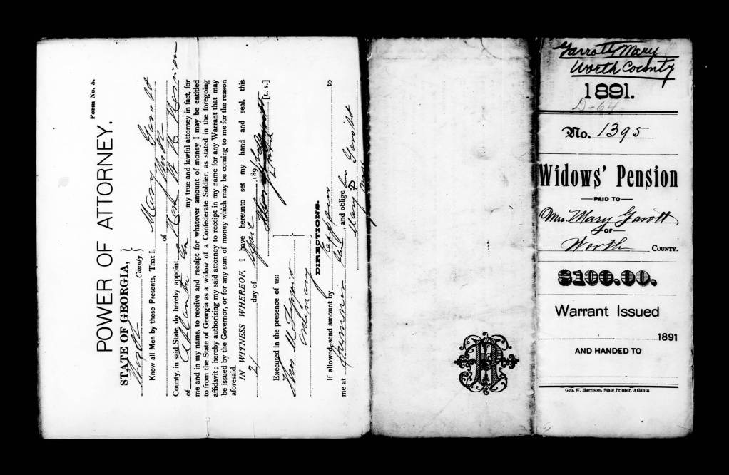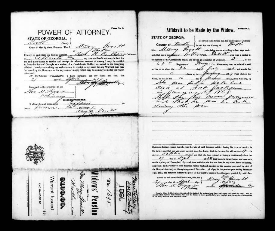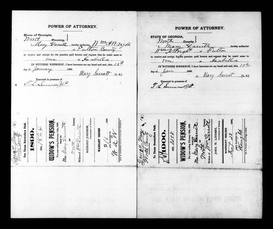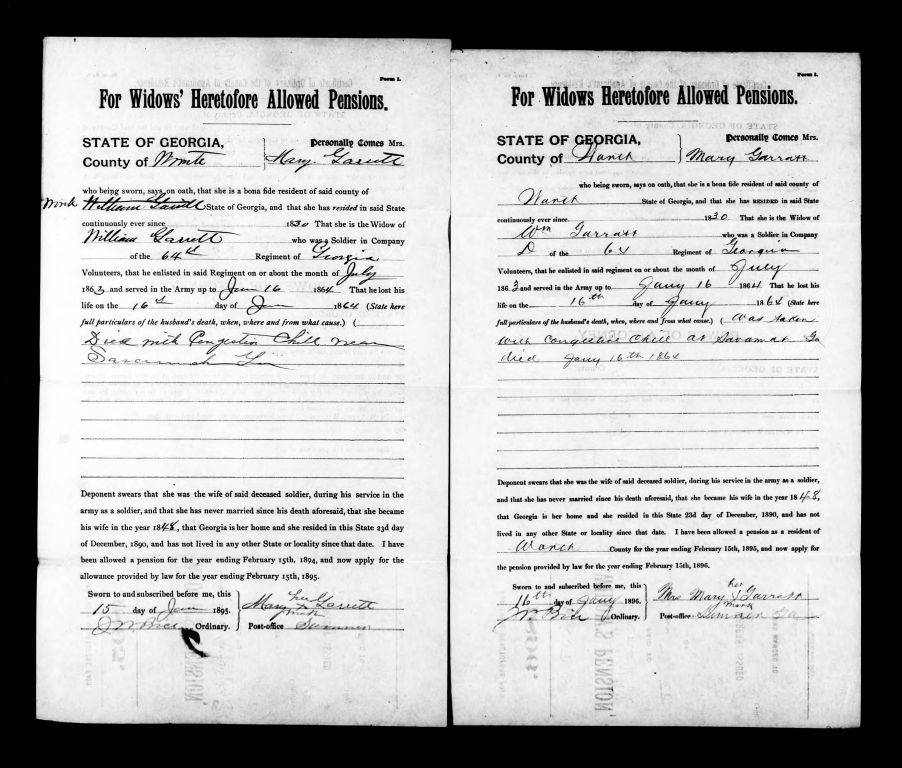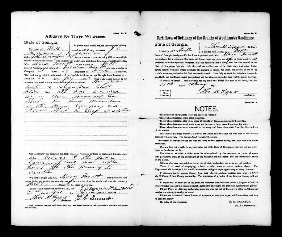 Mary Sumner Garrett died on the 2nd of December 1901 in Worth County, Georgia and is buried in the Sumner Cemetery, Sumner, Worth County, Georgia. Her husband, William Garrett died in the Civil War in or near Savannah, Georgia of Congestive Chill on the 16th of January 1864. Mary Sumner Garrett never remarried.