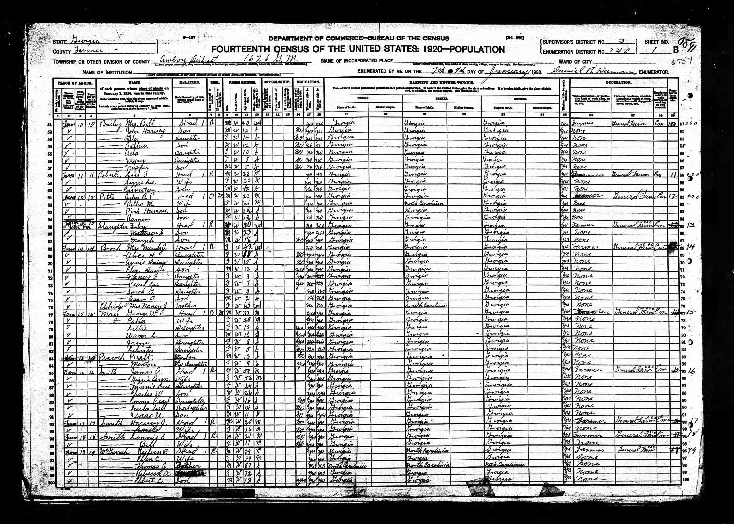 Retha Mahala Haman was born on the 10th of October 1898 in Georgia to Alvah B. Pinkney Haman and Mary Matilda Rooks.