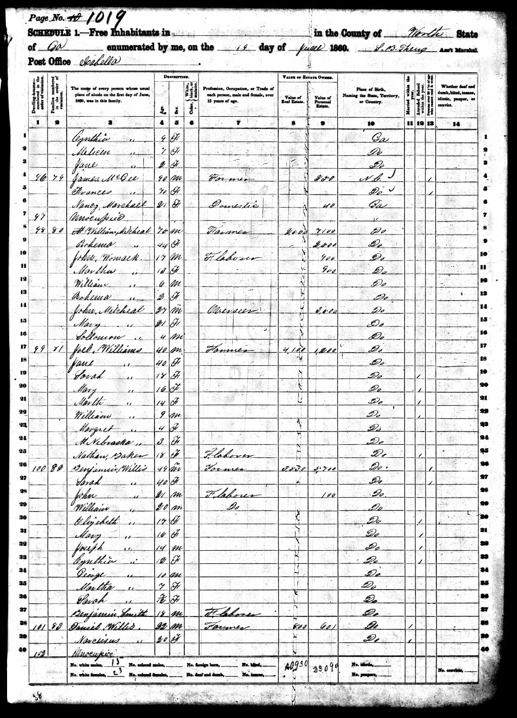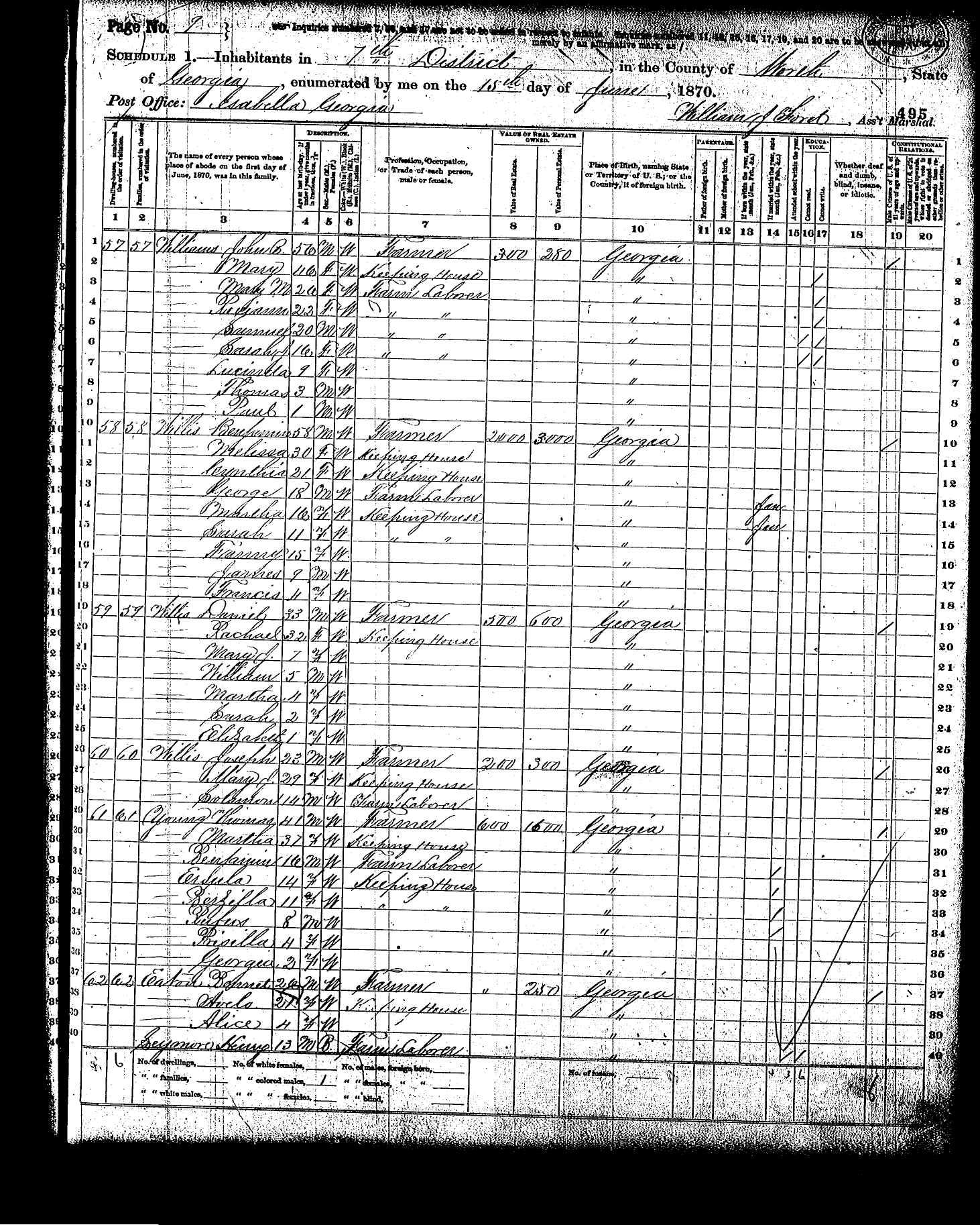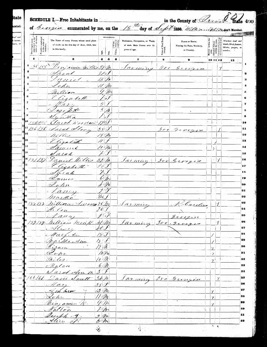 Sarah Sumner married Benjamin Willis on the 6th of December 1833 in Irwin County, Georgia. Benjamin Willis was born cir. 1810. Benjamin Willis married a second time to a Mrs. Melissa Gordon who had 3 known children from her previous marriage; Fanny Gordon, James Gordon and Frances Gordon.
