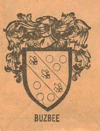 One of the more impressive coats of arms on record for the Busby (Buzbee) name is “Gules, on a bend argent, between six bezants, three fleue de lis azure.” The background of the shield is colored red (gules) with a diagonal band of silver (argent) on which there appears three fleur de lis of blue (azure). On the field of the shield are six bezants which are circular gold coins said to represent Byzantine coins acquired on the Crusades.